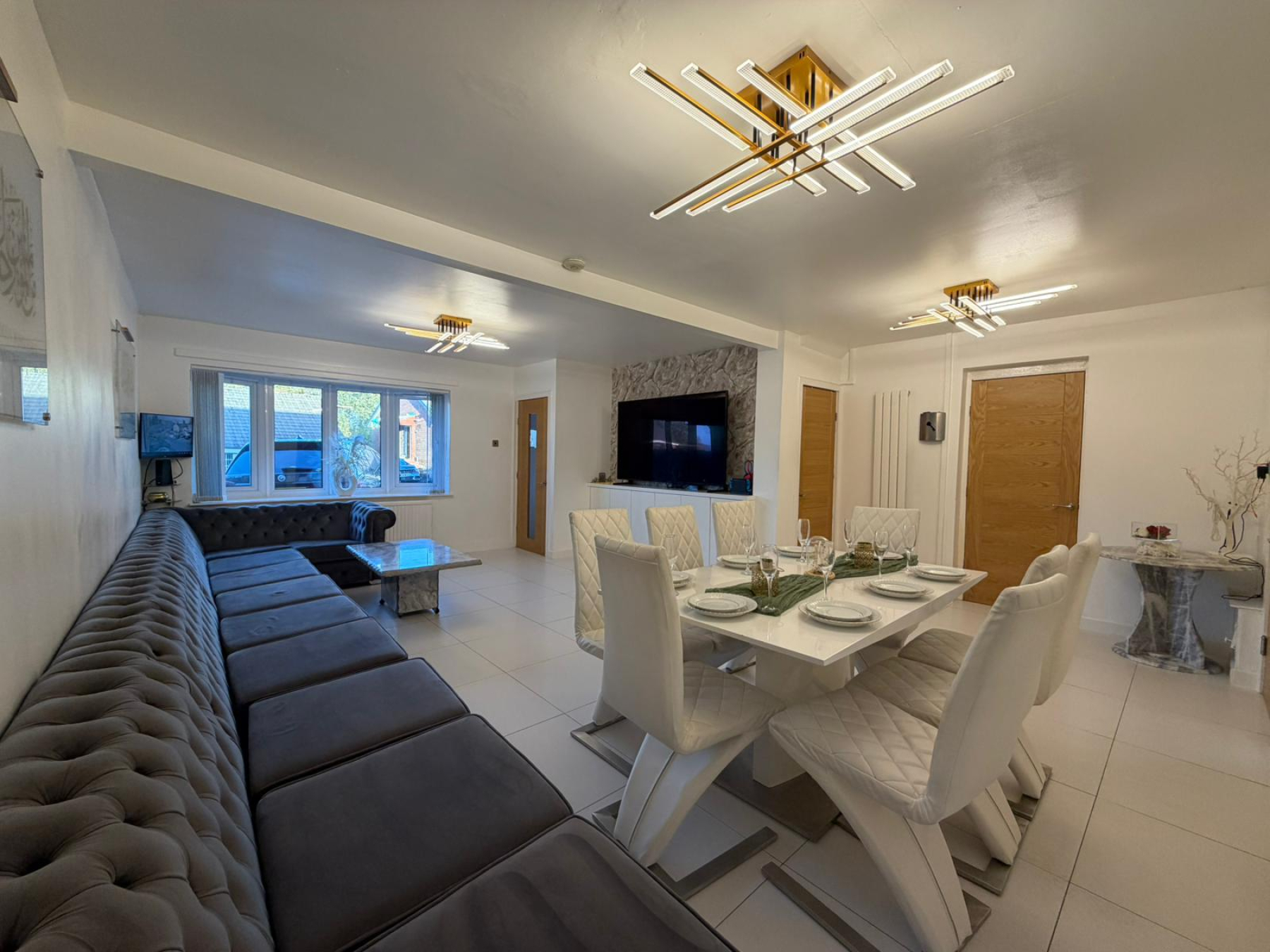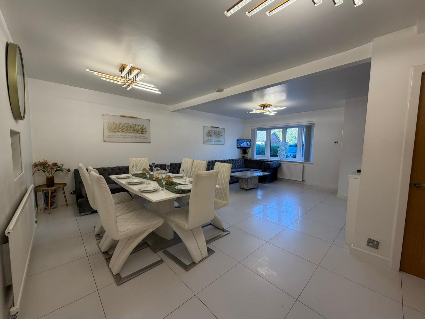At the heart of the home are two impressive and expansive living rooms, offering versatile spaces ideal for both relaxing and entertaining. The ground floor is enhanced by underfloor heating throughout and finished with stunning white tiled flooring, creating a sleek and modern feel.