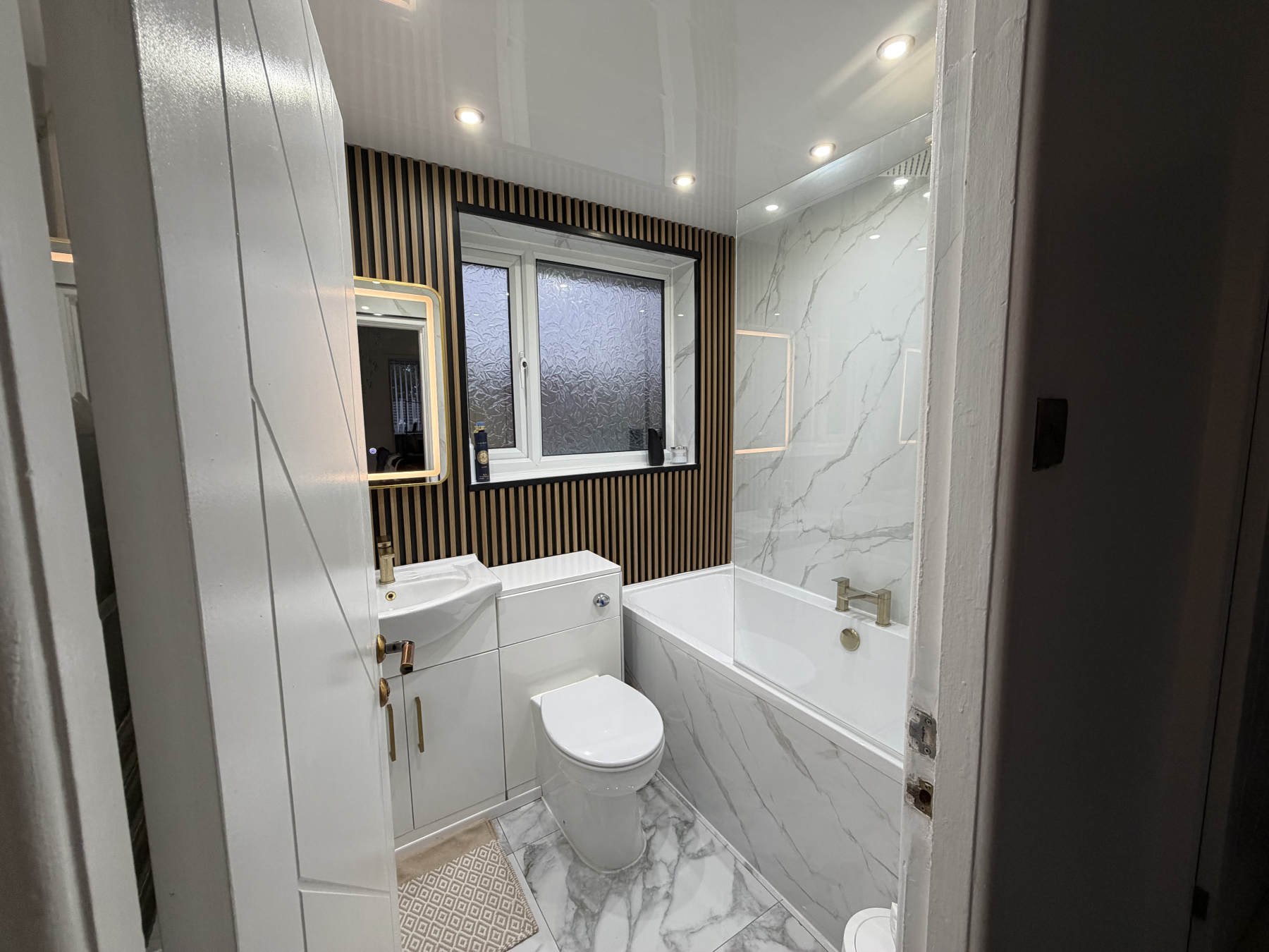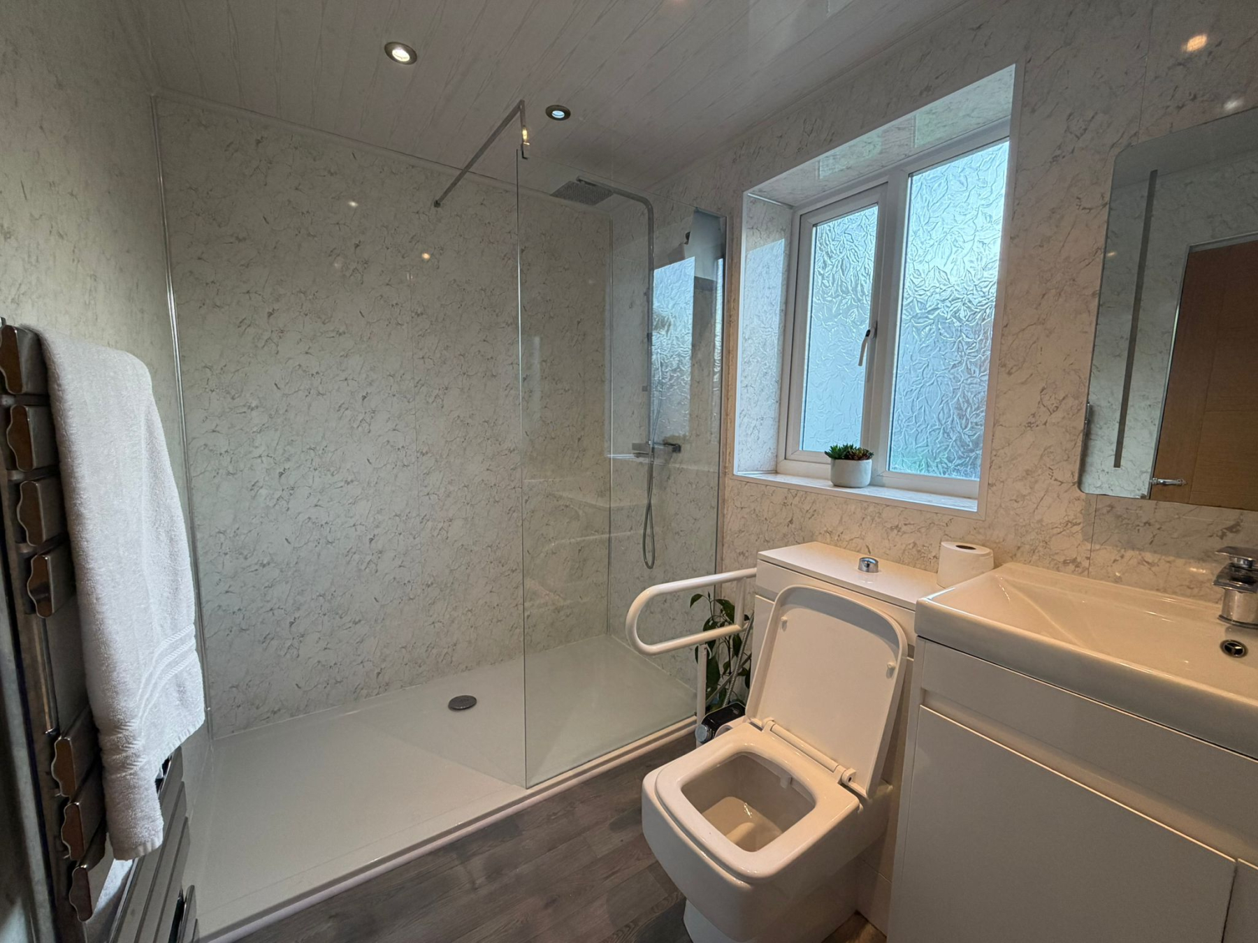 The property boasts five spacious bedrooms, two of which benefit from fitted wardrobes, providing ample storage. Upstairs, there are two stylish, newly fitted bathrooms, complemented by an additional contemporary bathroom on the ground floor for added convenience.
