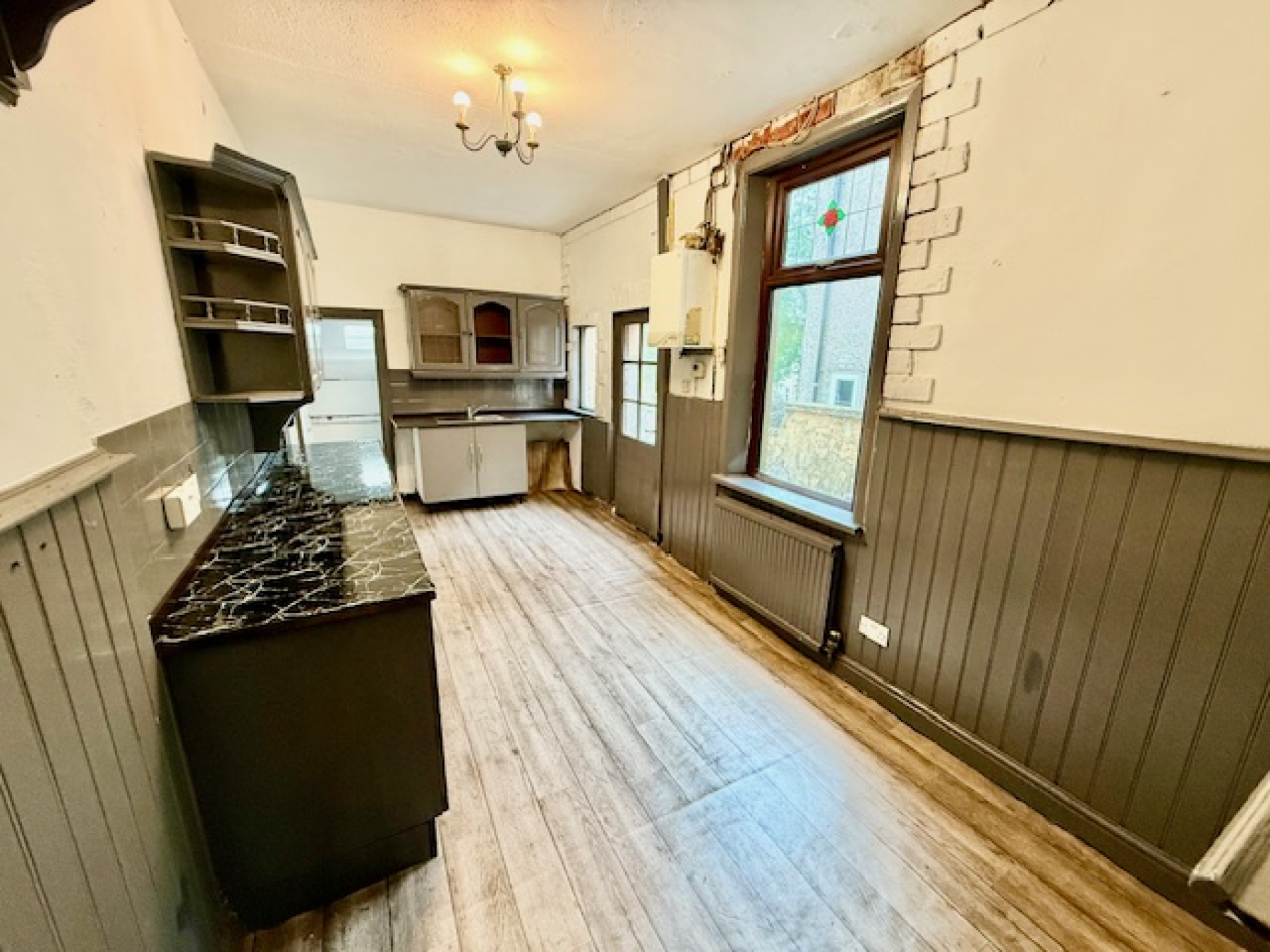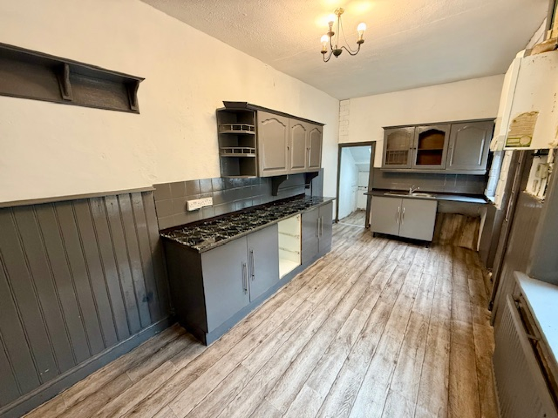 Boiler, base units, wall units, sink and radiator