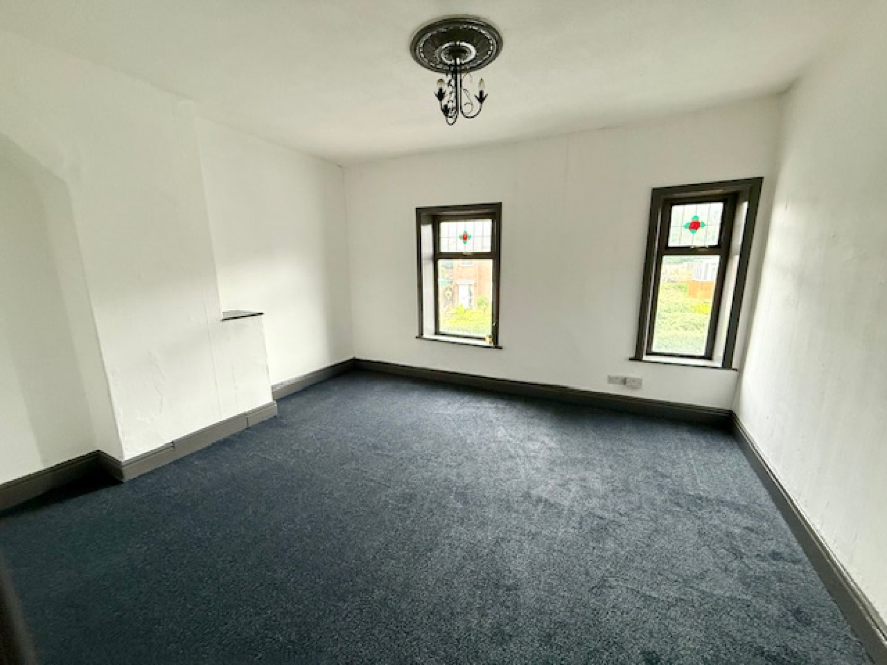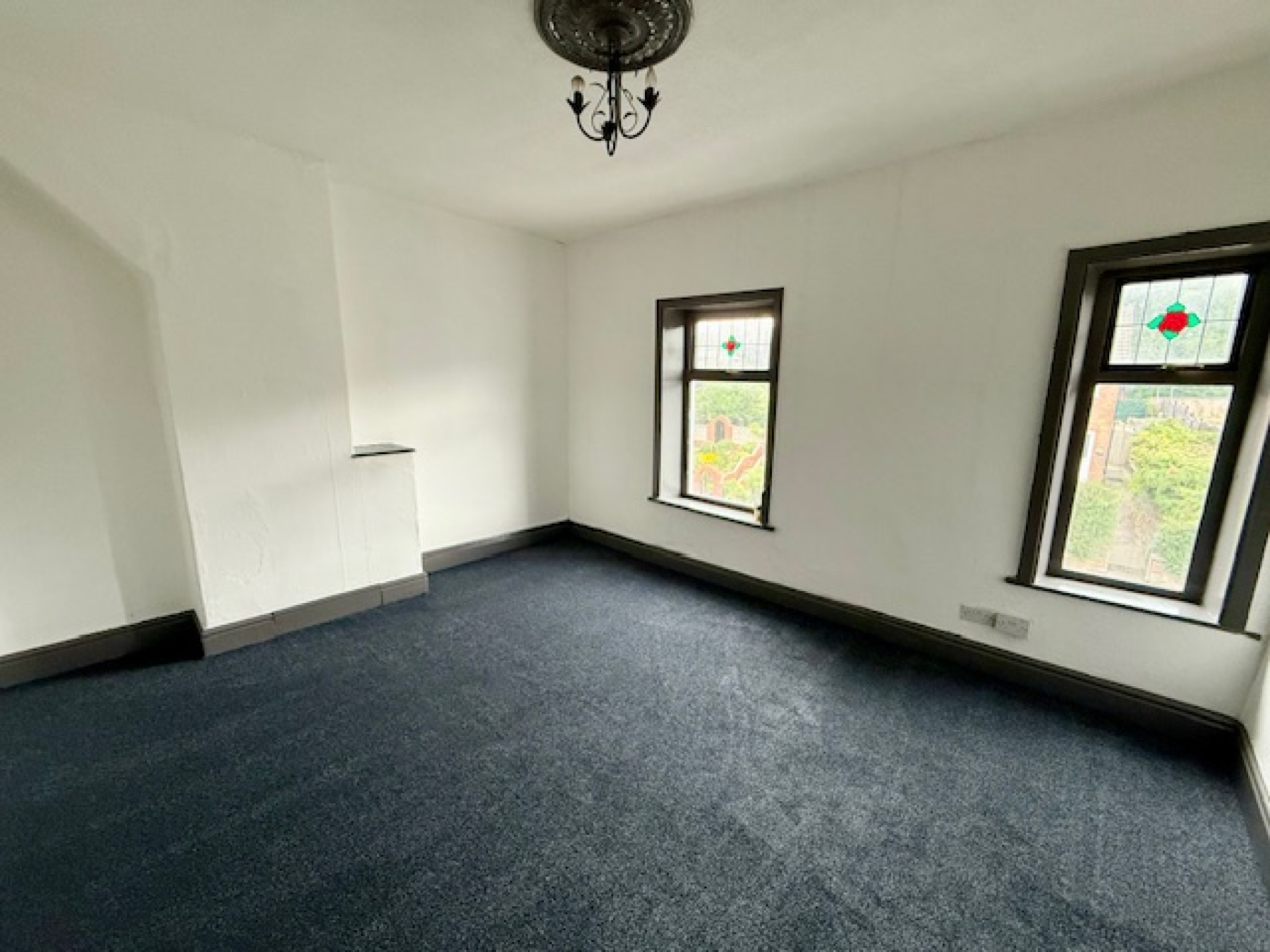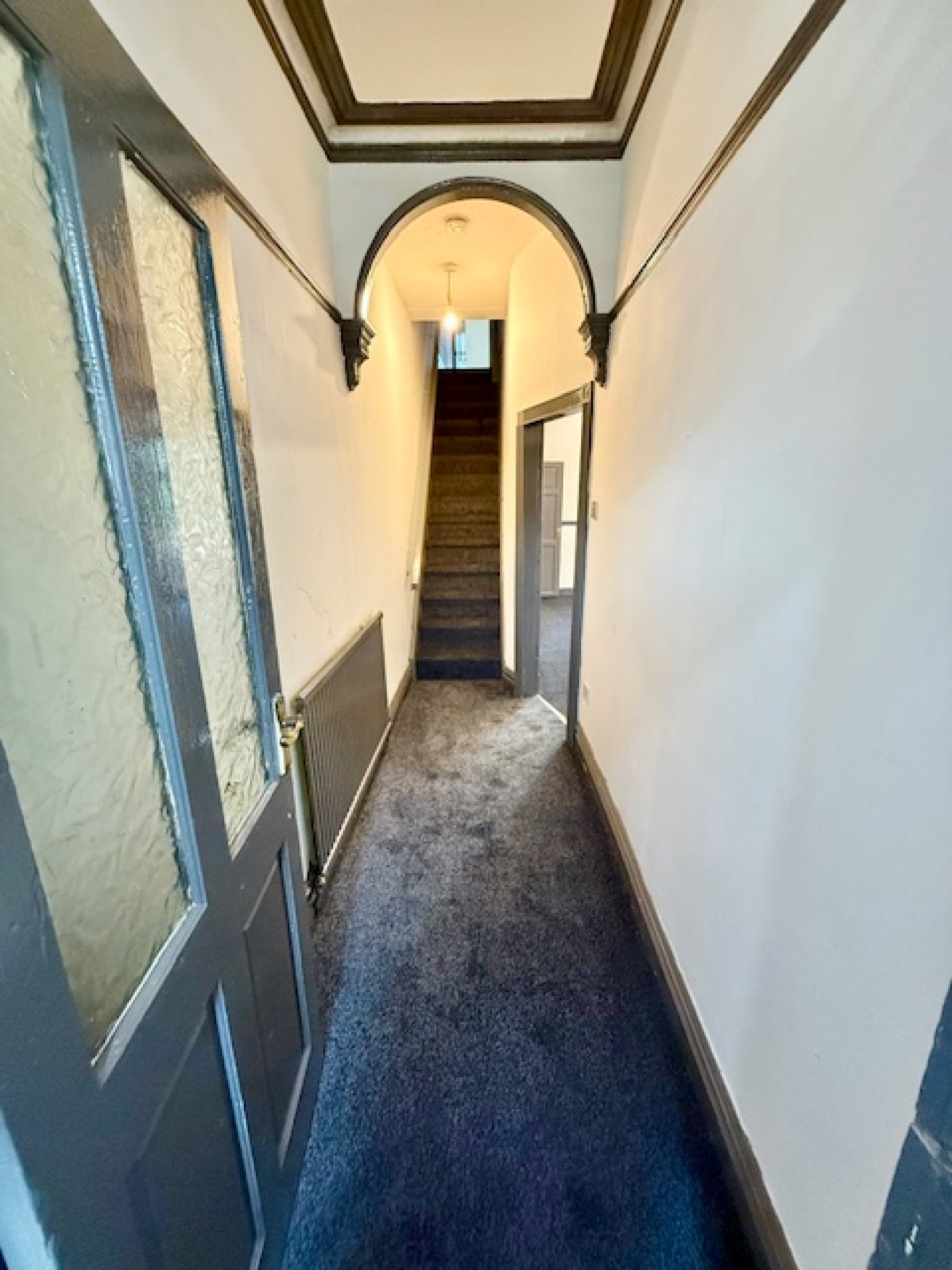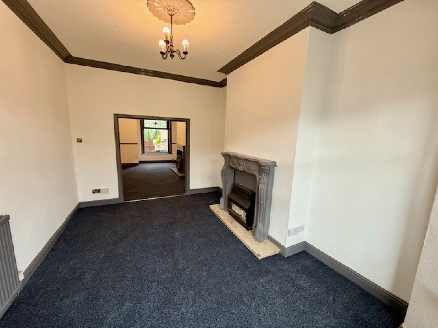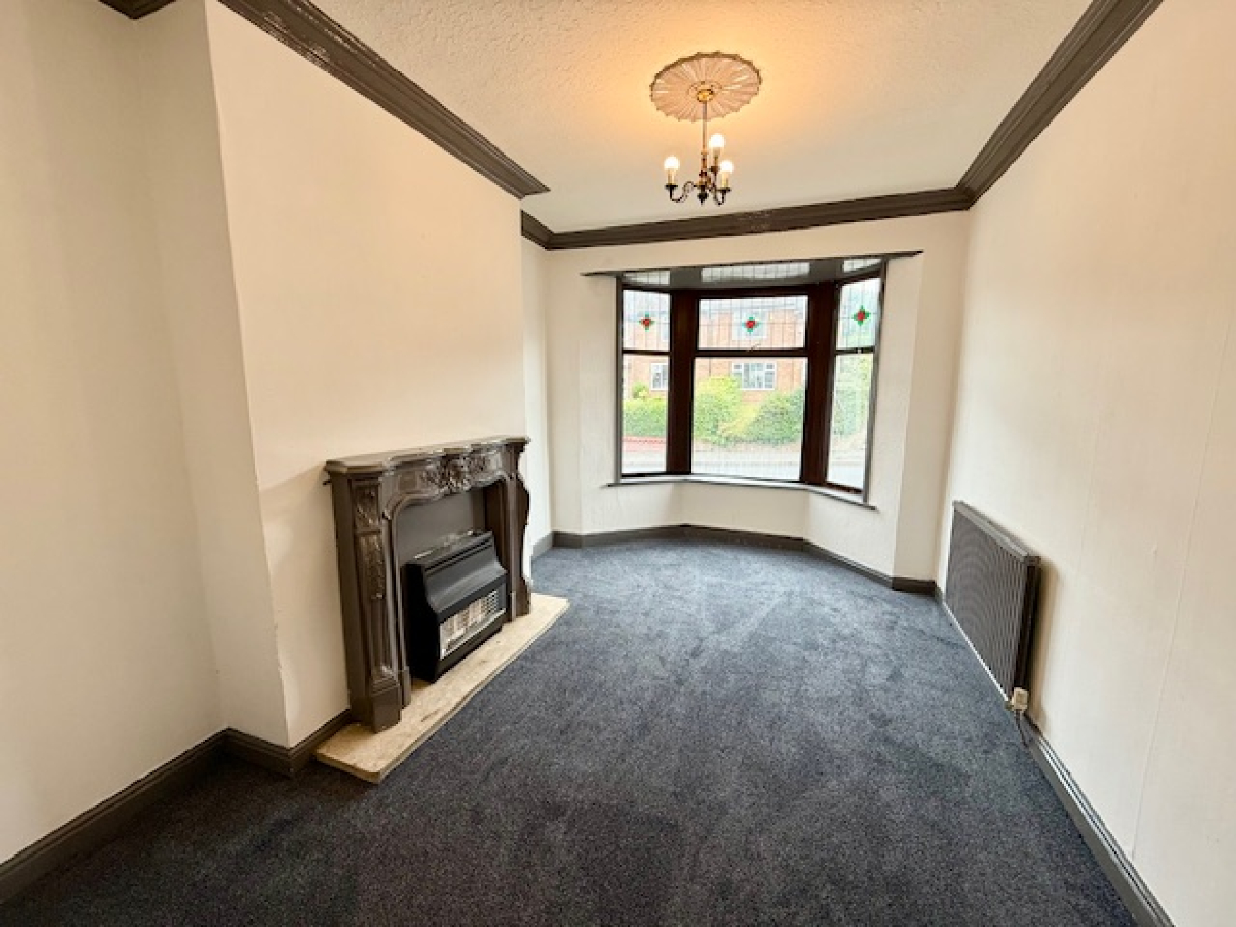 Bay window, coving, radiator and carpet