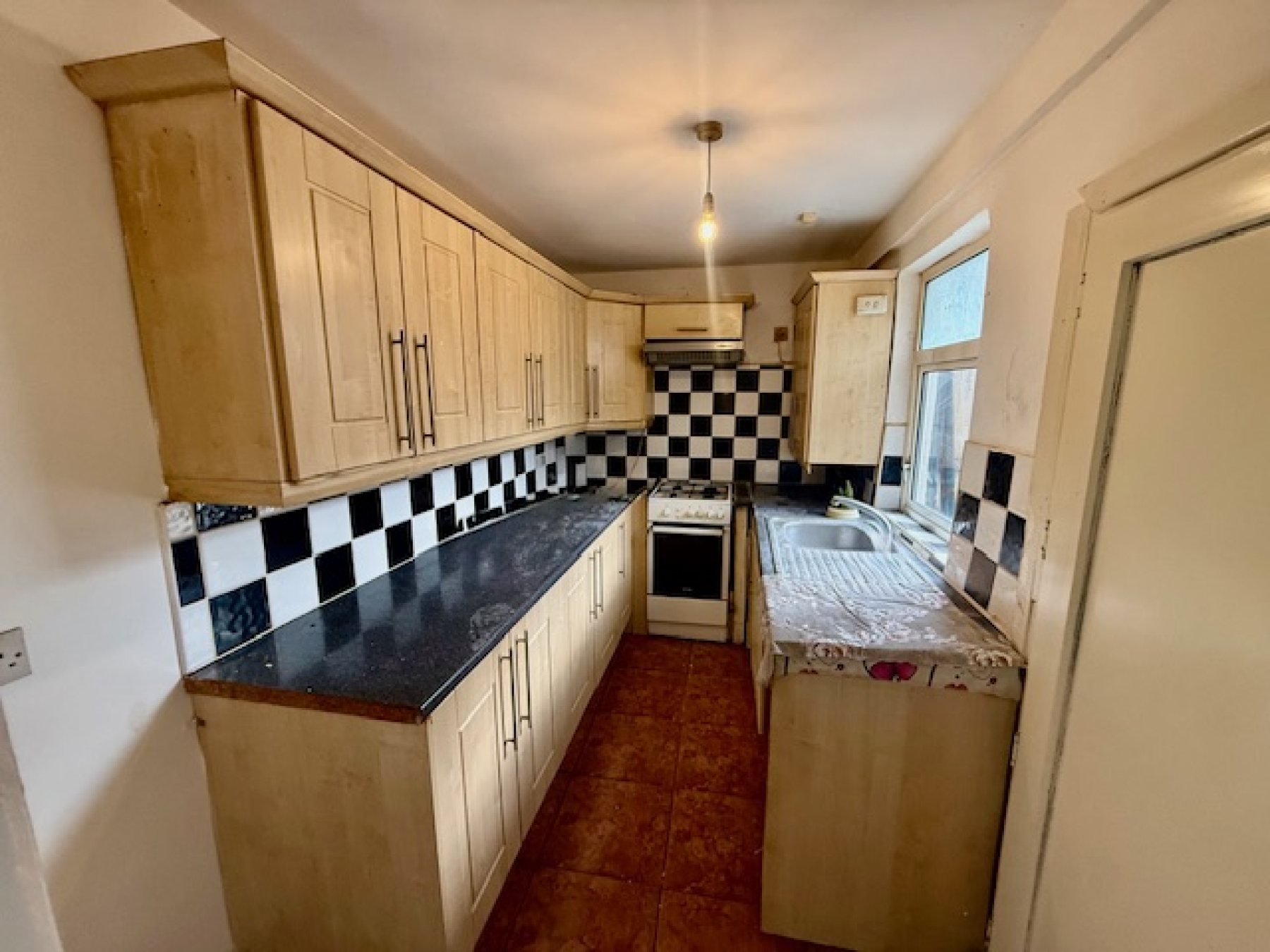 The home benefits from two reception rooms, providing flexible accommodation ideal for families, first-time buyers, or investors. A separate fitted kitchen sits to the rear, and the layout offers scope for reconfiguration, with potential to convert into a three-bedroom home (subject to relevant permissions).